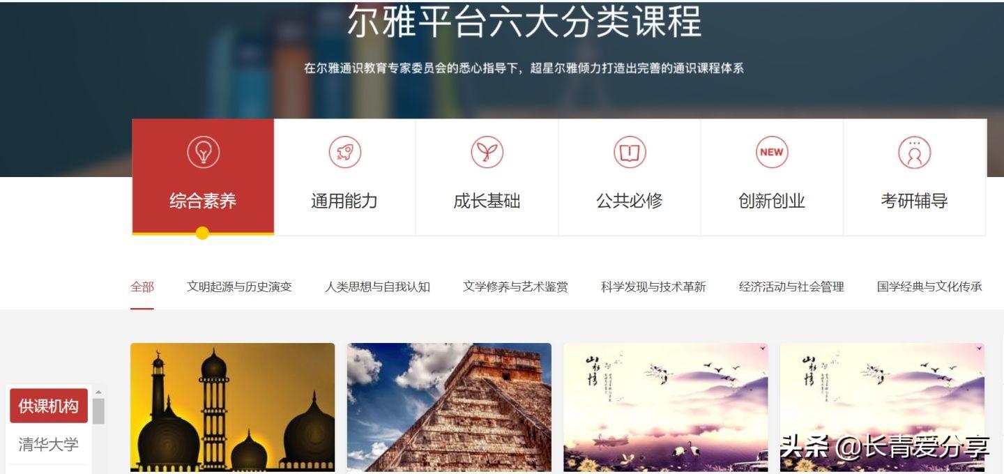 超星尔雅是一个通识教育平台,提供综合素质、通用能力、成长基础、创新创业、公选课、考研辅导六大类。 以综合优质蓝筹股为核心模块,由文明起源与历史变迁、人类思想与自我意识、文学修养与艺术欣赏、科学发现与技术创新、经济活动与社会管理六部分组成。 、中华经典文化推广。 此外,还提供培训服务、运营服务、咨询服务、资源服务、课程建设服务、拓展服务六大服务。 还提供讲座、专题、图书三大模块,拥有名师讲授系列讲座和优质图书。