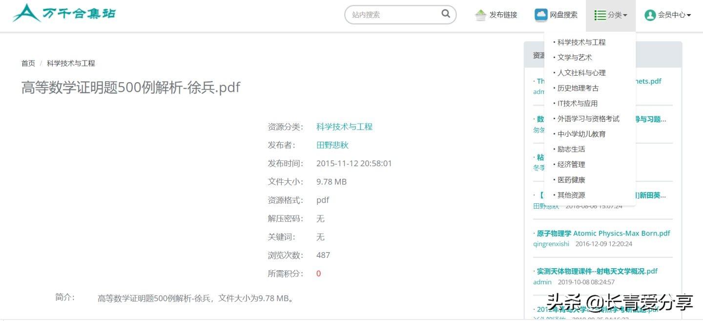 收录数千个Word、PDF格式文件,支持检索和下载。 还提供科学技术与工程、文学艺术、人文社会科学与心理学、历史地理与考古、IT技术与应用、外语学习与资格考试、初中幼儿教育、励志生活、经济管理等课程。 、医疗健康等资源等内容类别。