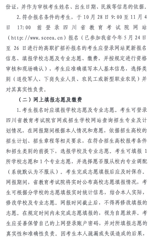 如志愿批次各专业计划调整后仍有未完成招生计划,将按照省考院统一要求向社会公布空缺计划,限期受理校外未注册考生来源调整。