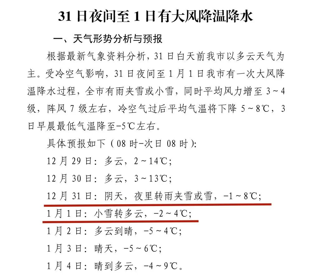 请广大市民密切关注最新的天气预报和预警信息,提前做好防寒保暖准备。计划在跨年夜外出参与活动的市民,需特别注意防风、防滑和交通安全。迎接新年之际,也请做好衣物添置和室内采暖保障,平安温暖度过此次寒潮过程。